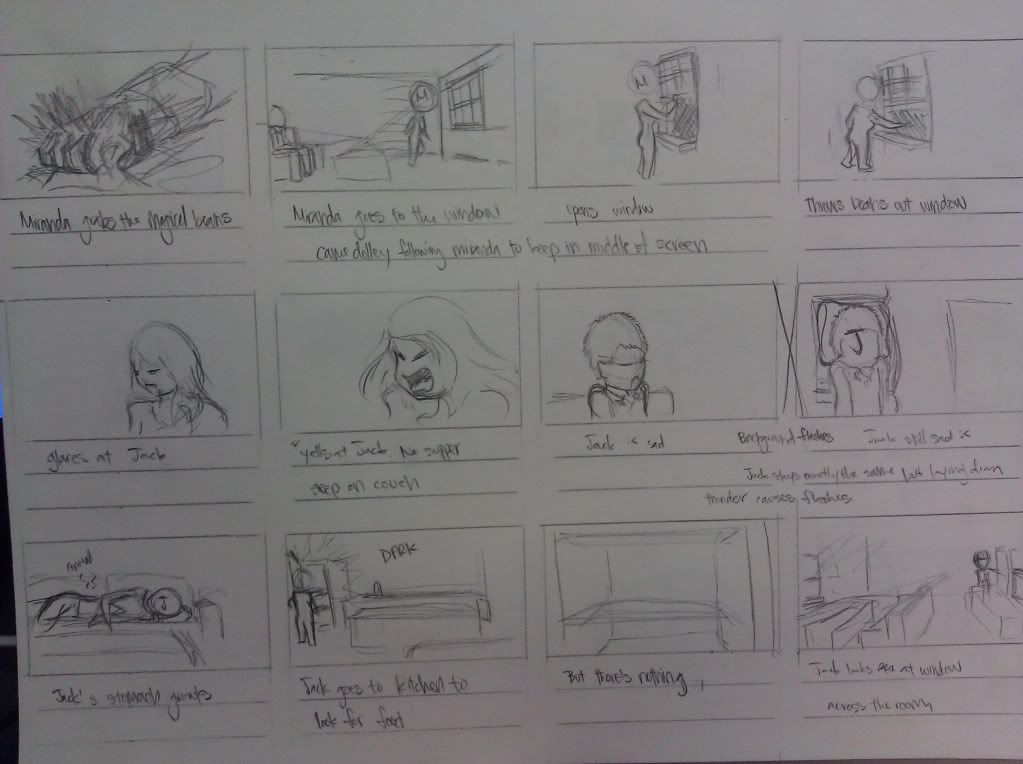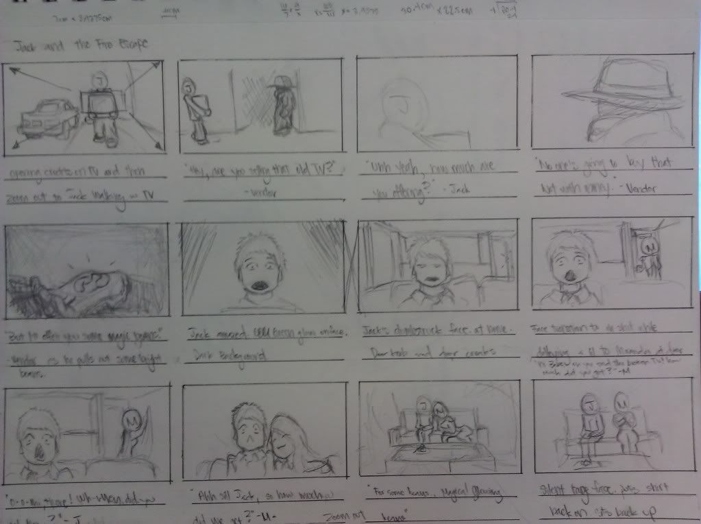 It was rather long, so I decided to compact it as much as possible. Instead of Jack making multiple trips, he just makes one and gets caught right away. A lot of elements in the story were lost and randomly appeared. I somewhat created a link in the animatic. There are still issues and hope I fix them in the final version. Hopefully a cleaner version also. I plan on dropping Toonboom Storyboard or whatever its called and just go with Photoshop and AfterEffects. With this switch, I can get better control in the individual animations like objects flying across the screen rather than screenshots of them going across.